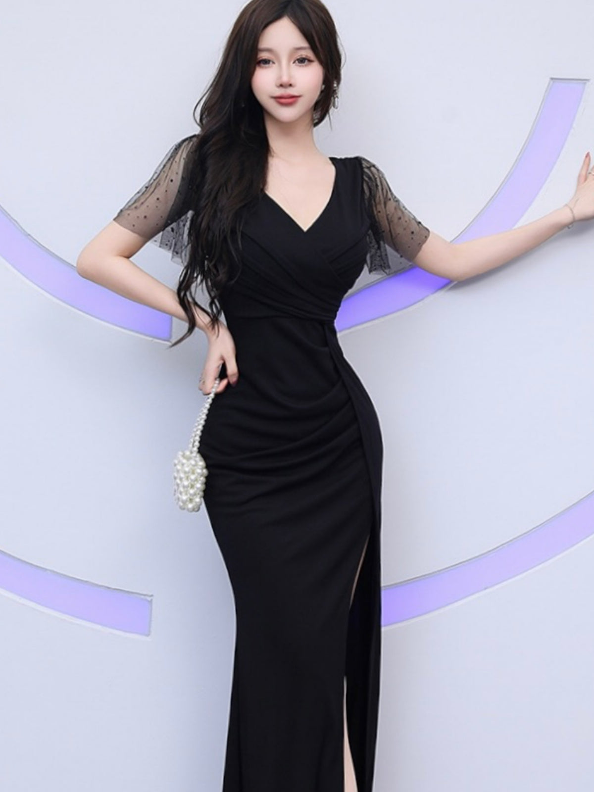 贅沢なロング丈で主役オーラを放つゴージャスなパーティドレス。女優気分を味わえる特別な一着は、イベントごとやパーティーにぴったりです。