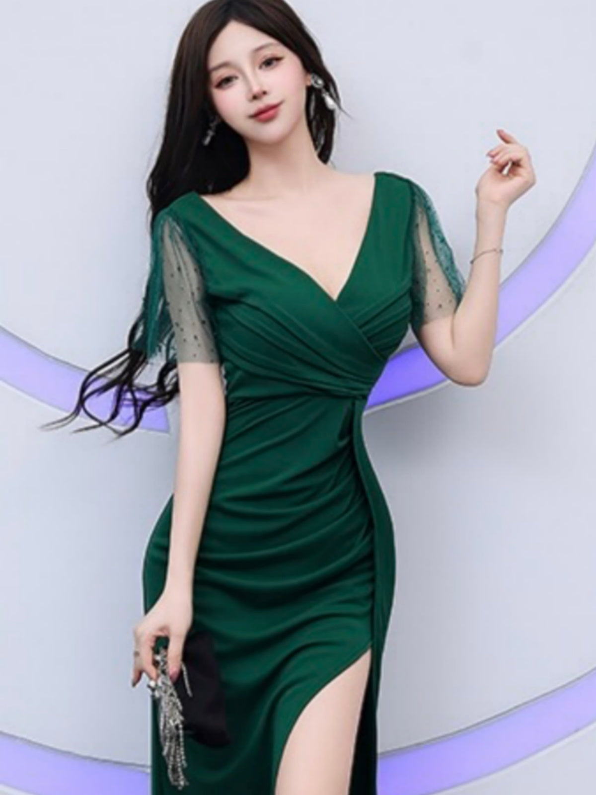 カラーはグラマラスな鮮やかグリーンとエレガントで気品漂うブラックと清潔感あふれる上品なライトブルーの3色をご用意。どちらも主役にふさわしい存在感たっぷりなカラーです。