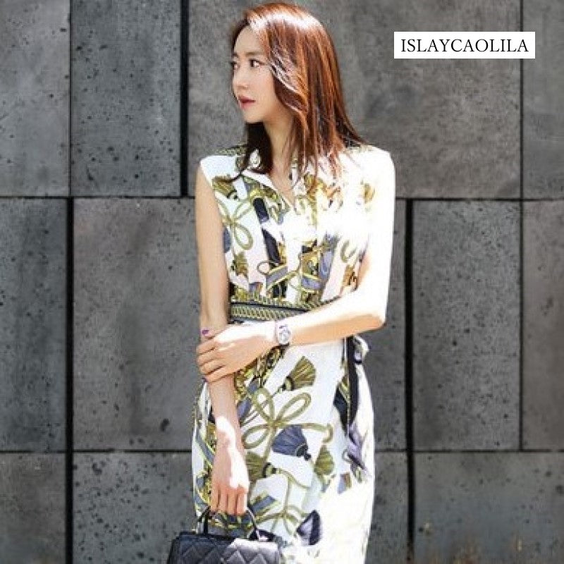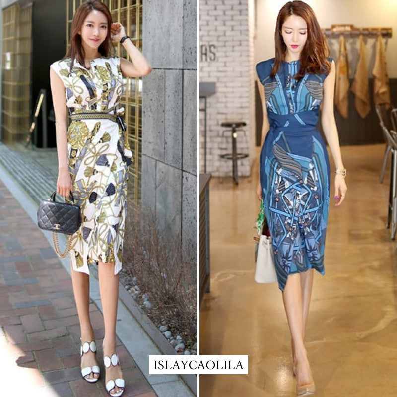華やかでエレガントなスカーフを、ざっくりと身にまとう感じのさわやかなワンピース、パーティドレスです。
