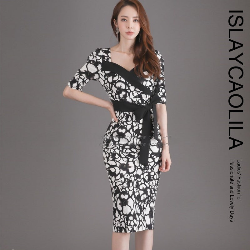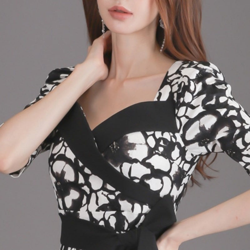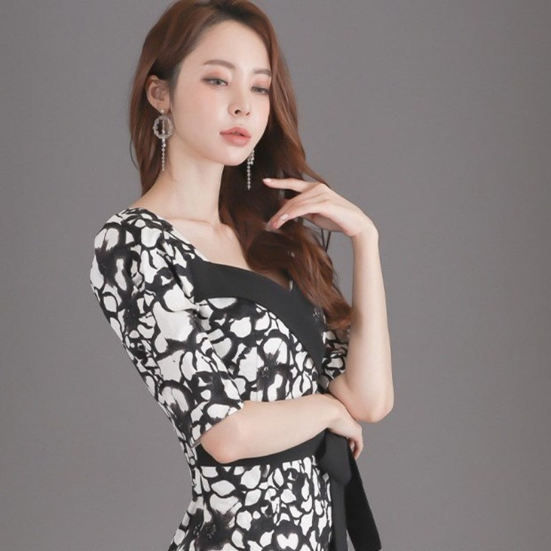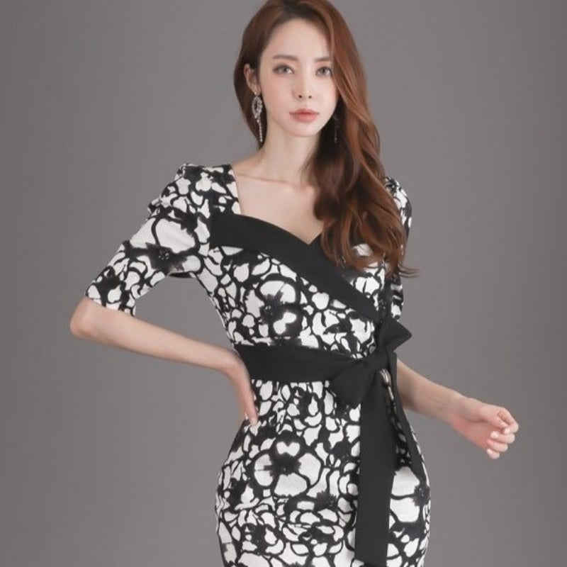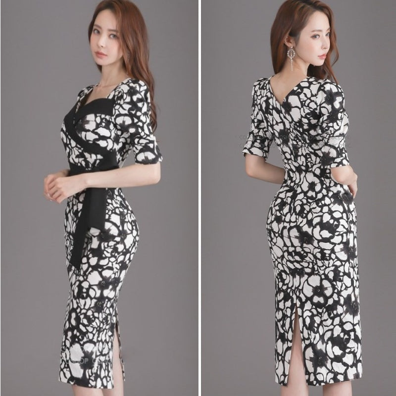 大人っぽい花柄でシックに。シンプルだけどトレンド感のあるデザインが魅力的なワンピース、パーティードレスです。