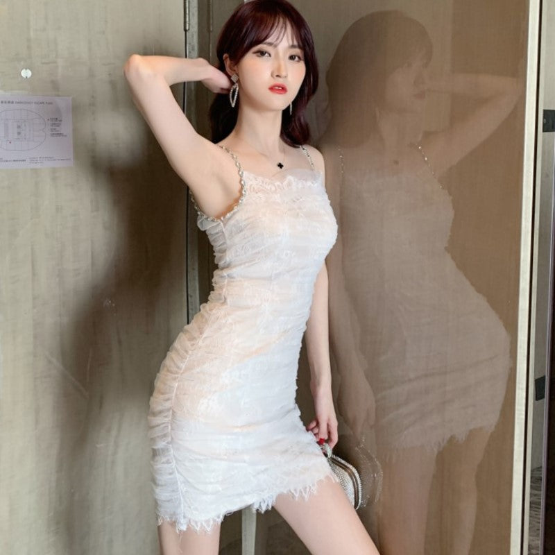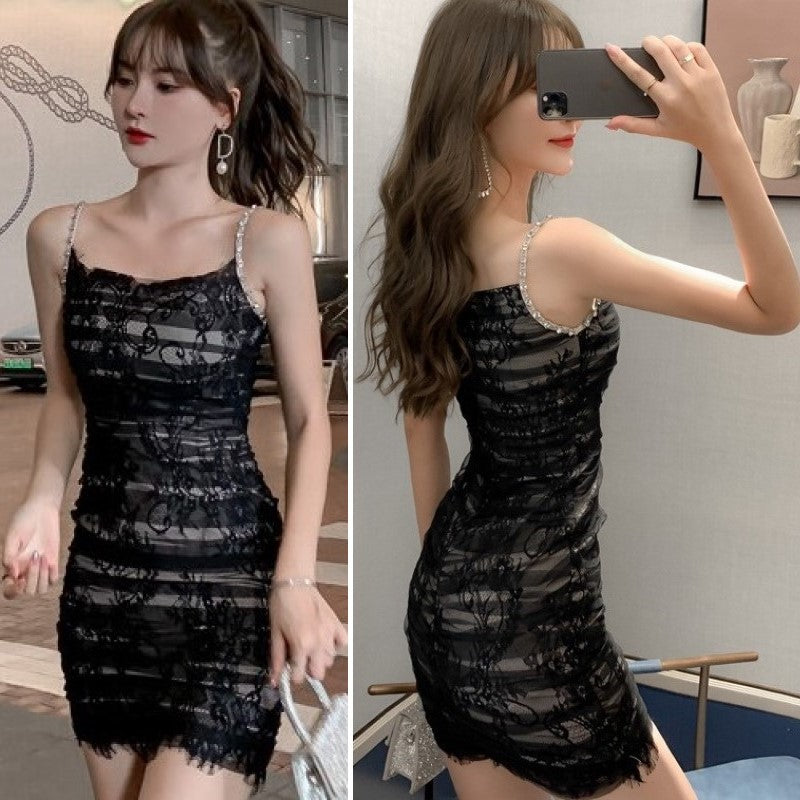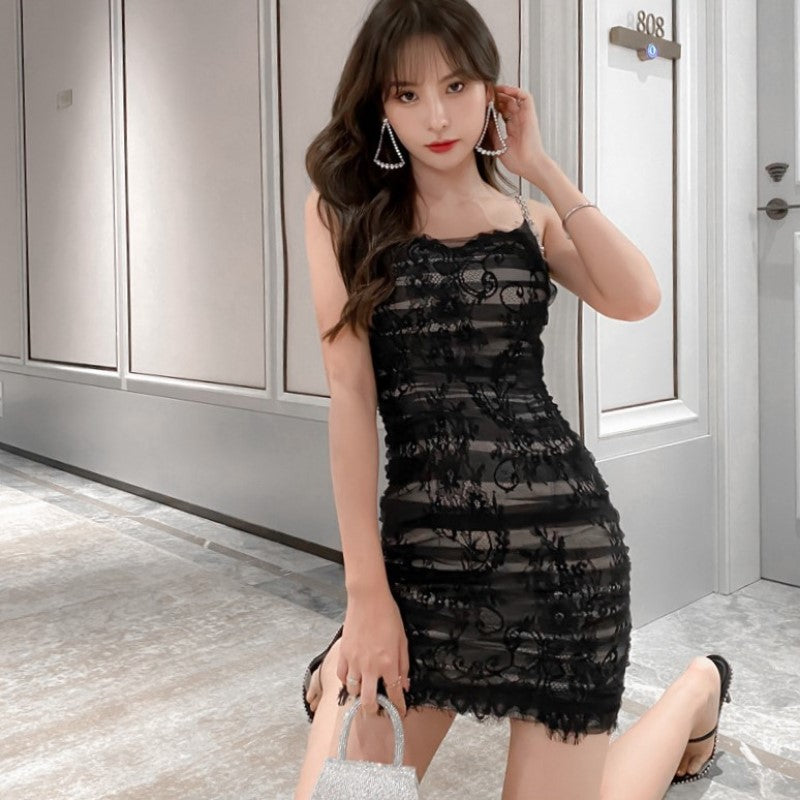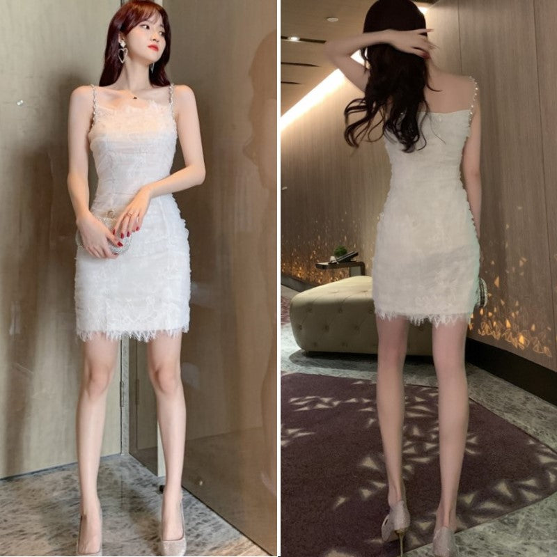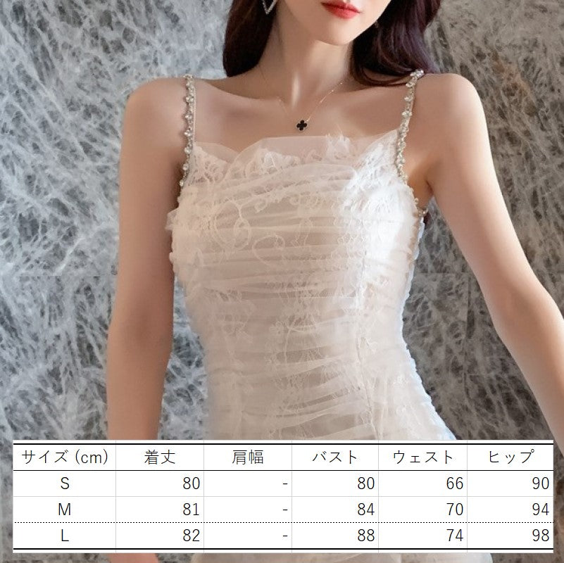 キラキラ光る肩紐がガーリーで、チュール素材とミニ丈がセクシーでフェミニンなワンピース、ドレス