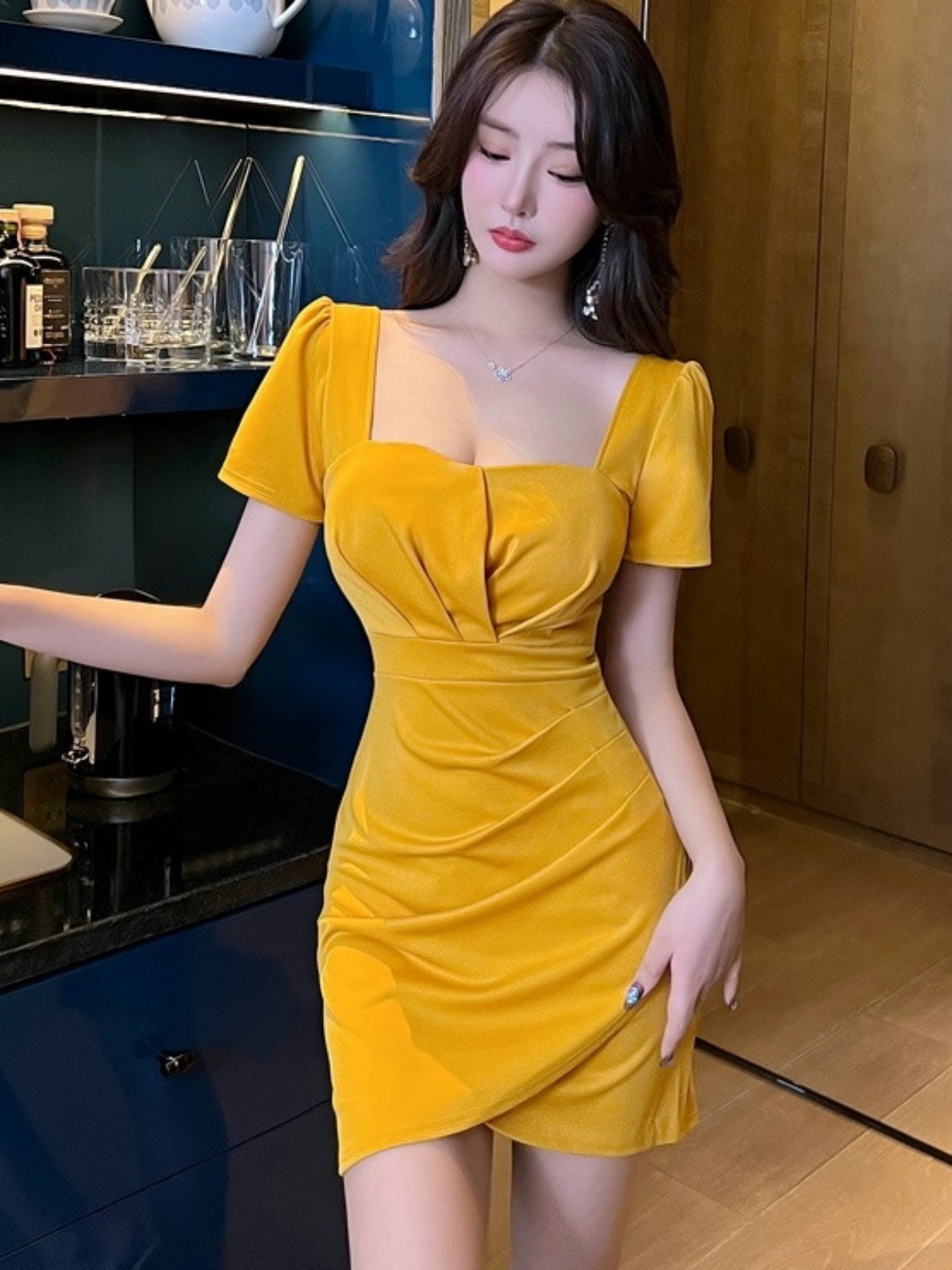ボディラインをとびきり美しく見せてくれる、計算しつくされたセクシーなワンピースです。身にまとうだけで、顔周りがパッと華やいで、主役気分が楽しめます。