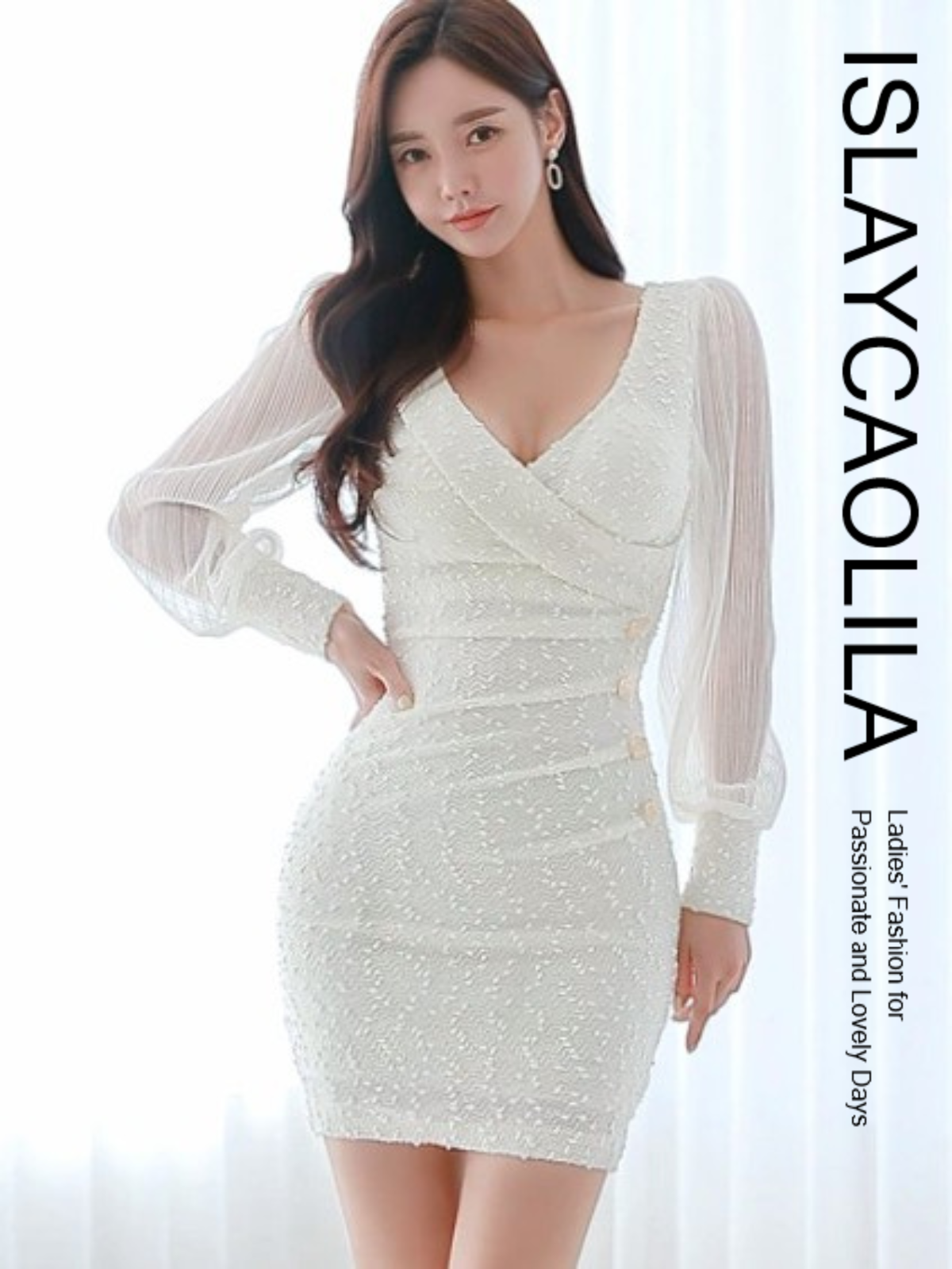 明るくやわらかなホワイトカラーは、肌の透明感を引き出してくれるような存在。 露出は控えめながらも、タイトなミニ丈と深めのVネックがほんのりと色気を漂わせ、清楚だけでは終わらない一面を演出してくれます。