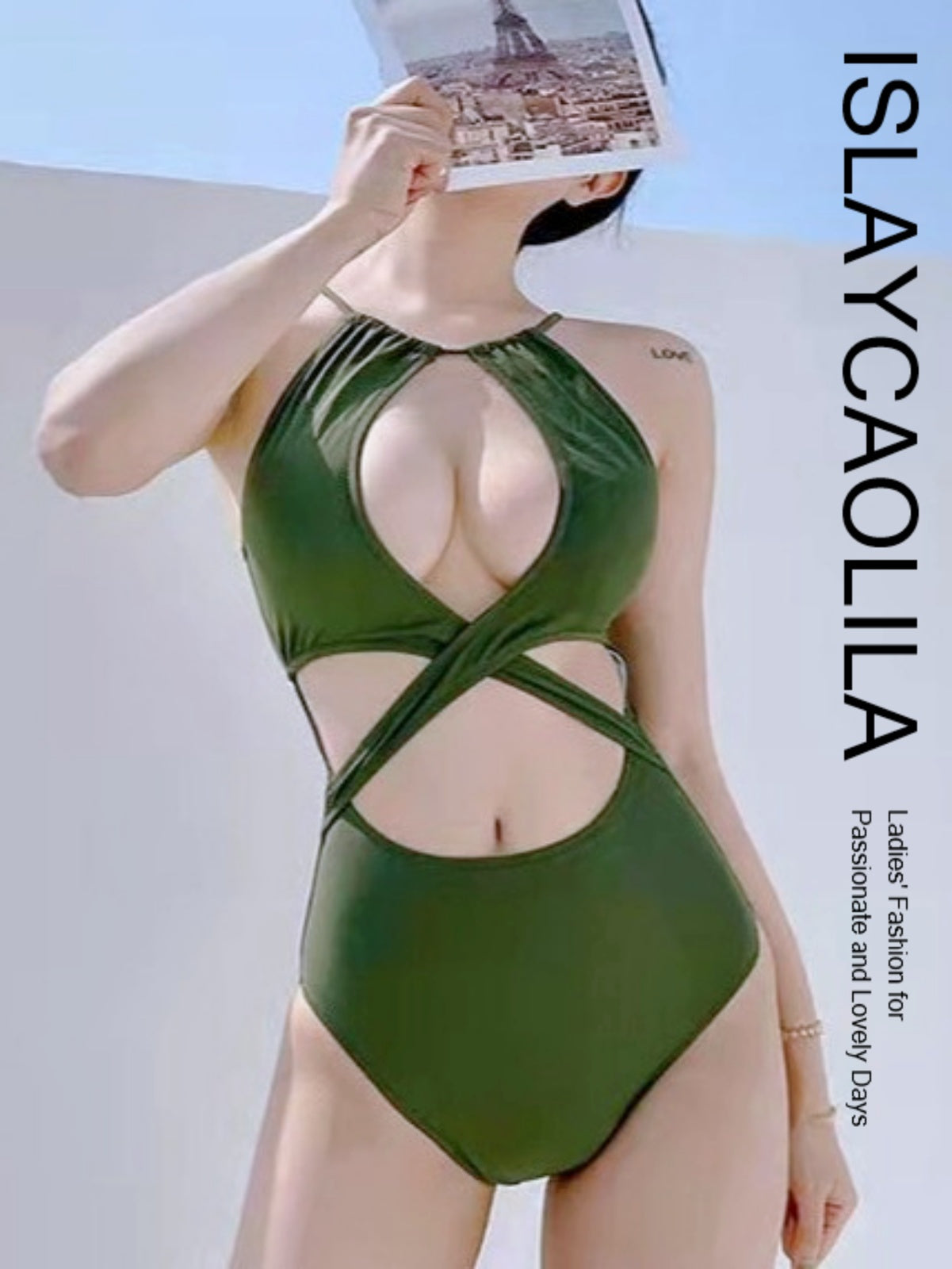胸元が大きく開いたセクシーなモノキニ。ボディラインを強調してスタイル良く見せてくれる工夫がたっぷり詰まった一着です。